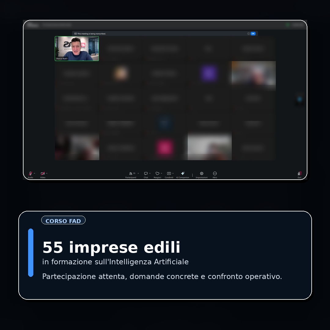 Vedere così tante imprese edili collegate per un corso sull’intelligenza artificiale è un dato che merita attenzione. Significa che il settore vuole capire, aggiornarsi e prepararsi a un cambiamento che sta già entrando in molte attività professionali.